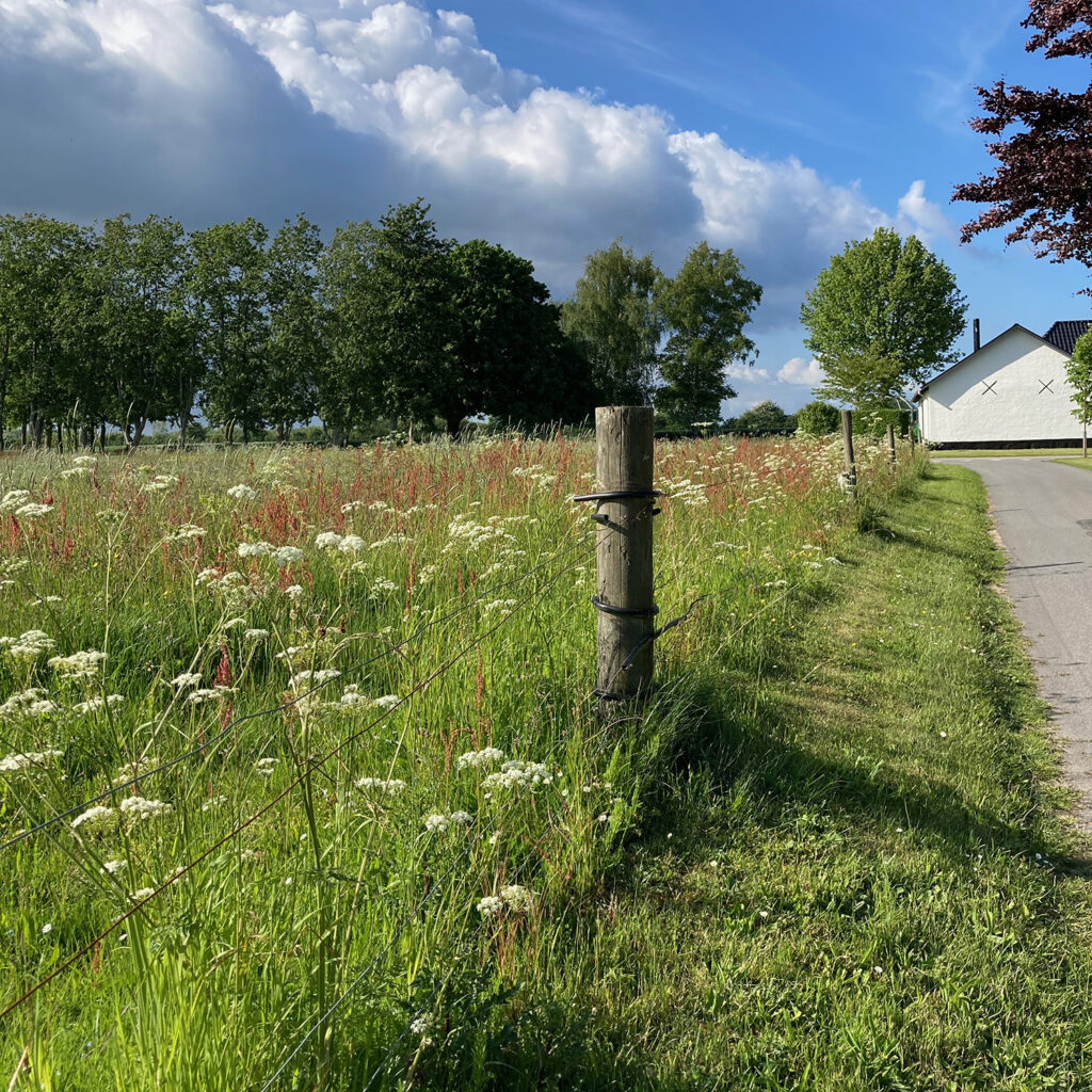 Unsere Feriendomizile Ollinggård und Lærkehuset sind die einzigen Häuser des kleinen Weges Nypølsrend und liegen nicht in einem Ferienhausgebiet, sondern zwischen dem beliebten Badestrand der Mommark Marina und Kærneland, dem schönsten Sandstrand auf Als.